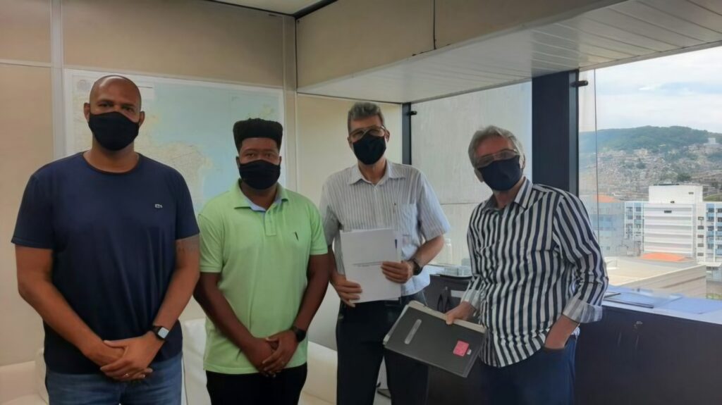 Foto 7 – Sub Prefeito Leonardo Pavão, Assessor Luís Gustavo, Engenheiro Marcelo Paiva e o Presidente da Câmara Comunitária de São Cristóvão Maurício Mendes (I.M.), em uma das diversas Reuniões com a Prefeitura. Janeiro de 2022, período pós pandemia.