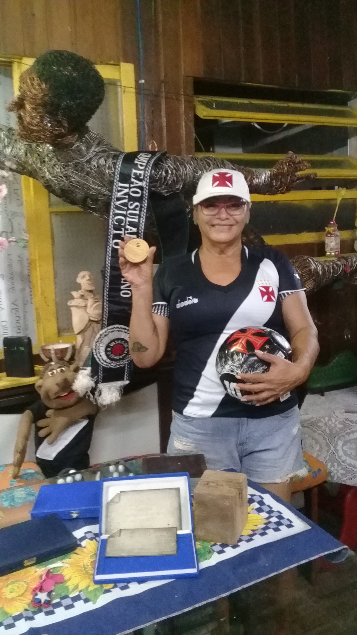 TEREZA BORBA, 54 anos, cuidadora, casada com o vascaíno José Mauro, com quem teve um casal de filhos. Do signo de gêmeos, embora moradora de Praia Grande (Litoral de São Paulo) é mangueirense e vascainíssima. Sua cor preferida é o azul, mas ela afirma que o preto e o branco não podem ficar de fora. A filha de coração do eterno arqueiro Moacir Barbosa Nascimento nas horas vagas gosta de viajar e beber uma cervejinha com os amigos.