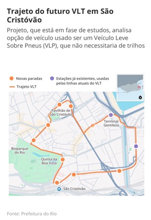 A Prefeitura apresentou um traçado preliminar do VLT/VLP em São Cristóvão, com novas paradas próximas à Leopoldina e ao Terminal Intermodal Gentileza.